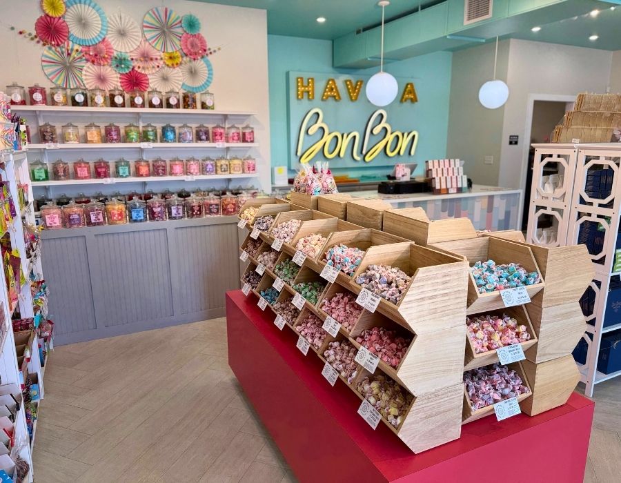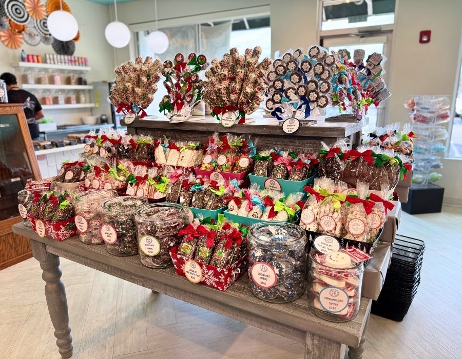 The shop is perfectly set up for holiday gift shopping, with rows and rows of taffy, toffee, chocolates, fudge, and specialty candies, which make great gifts for all ages.