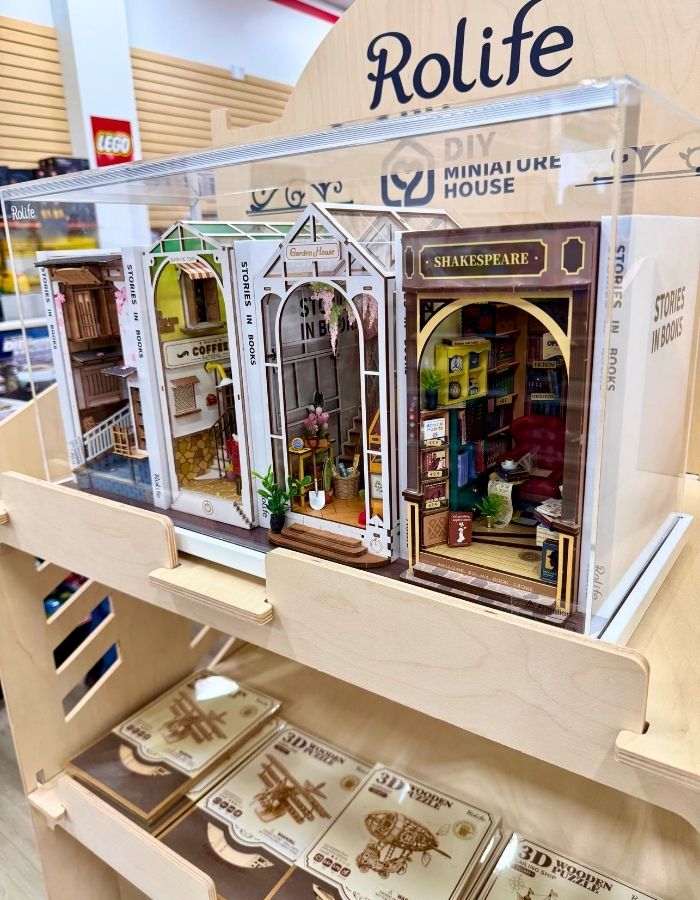 BONUS FOR MOM: While I’m not personally into RC cars, I appreciated that this store was also well-stocked for more cozy hobby pursuits, like puzzles and paint-by-numbers. The manager told me that the hottest thing in the store right now are these miniature craft kits called Rolife, used to build darling, cozy scenes of bookstores, cafes and train stations that can sit on your bookshelf as decor. This is definitely on my personal wishlist!